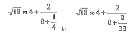 Архимед при нахождении приближения к числу корень из трех, пользовался методом, близким к разложению корня из трех в цепную дробь.
